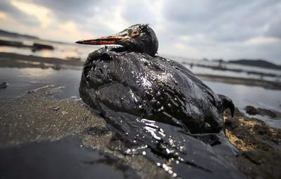 아래 사진은 실제 사고 당시 기름에 뒤덮인 새의 모습입니다.